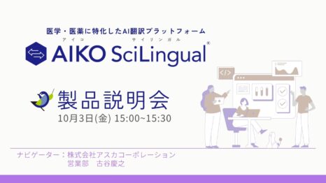 製薬向けAI翻訳プラットフォーム「AIKO SciLingual」製品説明会
