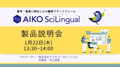 高精度の生命科学分野の翻訳を社内で実現できるAI翻訳「AIKO SciLingual」アスカコーポレーションが独自構築したAI翻訳「SciLingual」を搭載。SciLingualはトップレベルの学術誌の翻訳でも活用されています。