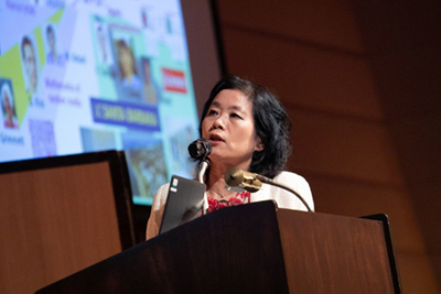世界トップレベル研究拠点プログラム(World Premier International Research Center Initiative:WPI)のAdvance Institute for Materials Research(AIMR)の責任者である小谷元子教授は、「世界トップレベルの研究センターの発展:WPI-AIMRの活動(Development of world-class research center: activities of WPI-AIMR)」と題して講演を行った。小谷教授は、科学・技術・工学・数学(science, technology, engineering, and mathematics:STEM)分野における女性による研究の草分け的存在として指導的役割を果たしていること、またその研究分野における業績によって有名である。小谷教授は、日本における多くの女性研究者のために科学研究の道を模索し切り開いてきた。