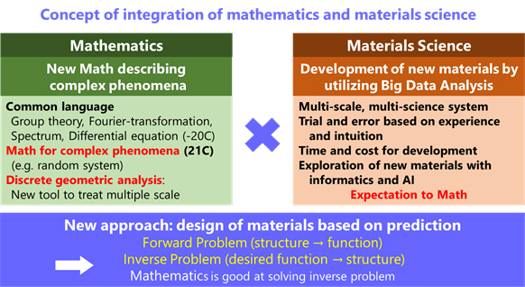 もっとも挑戦的なミッションが、研究領域を超えた学際的な融合による新しい科学分野の創設である。WPI-AIMRは、世界にさきがけて、数学者と材料科学の実験科学者が一つ屋根の下に集結した研究所である。数学の視点を物質科学に組み込むことで、新しい科学分野を創り出そうと試みてきた。材料科学の基本的な問いは目指す機能を持つ物質の構造とプロセスを見出すことであるが、「離散幾何解析学」という21世紀の新しい数学によって物質を階層ネットワークとして理解し、機能ー構造ープロセスの相関を明らかにしようという難しい挑戦である。しかし、小谷教授らの取り組みは、2013年にScienceに掲載された論文を契機に、その後WPI-AIMRでは数学・理論・計算・実験の連携を強力に推進し、萌芽的な成果を発表してきた。「データ駆動型(data-driven)の物質科学」が世界中で期待されるなか、小谷教授はデータから情報、意味、理解そして知恵を生み出すために数学による概念化が重要であると主張した。
