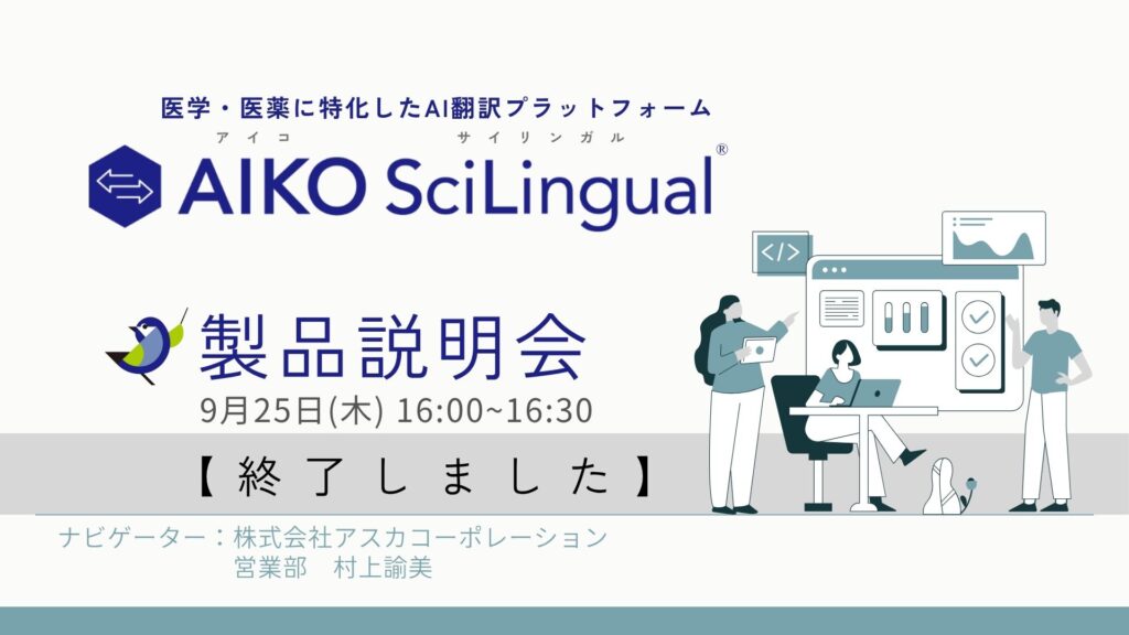 株式会社アスカコーポレーション(以下、ASCA)が提供する製薬会社/医療機器メーカー/CRO様向けのAI翻訳プラットフォーム「AIKO SciLingual」には、医学・医薬特化の翻訳エンジン「SciLingual」の他にもGoogle、Microsoft、GPT-4.1などの複数の翻訳エンジンが搭載されており、場面や翻訳する文書タイプに応じて選択していただくことができます。