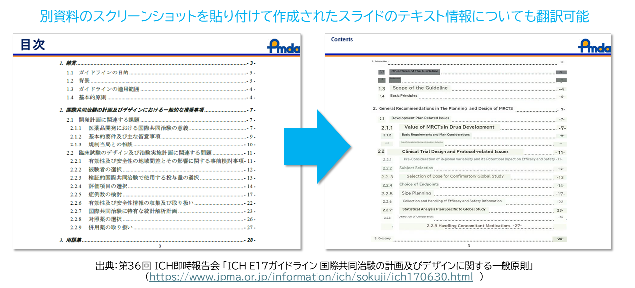 図表、プロモーション画像、インフォグラフィックなどの画像を含むパワーポイントファイルやPDFファイルを頻繁に翻訳される場合など、翻訳の時間と手間を短縮できます。